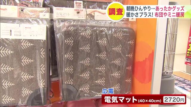 『広電 電気マット(40×40cm) 2,720円(税込)』は、この時期とくに売れているというあったかグッズ。