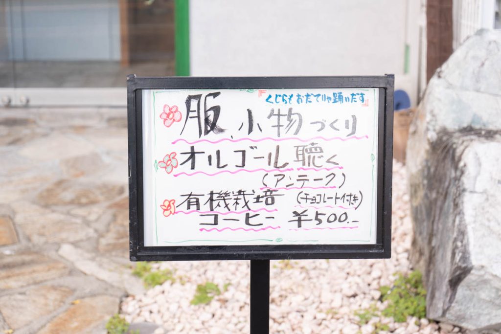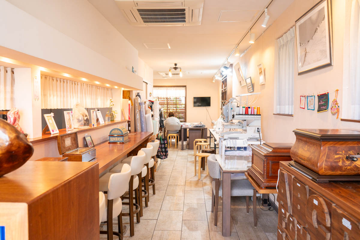 2024年の12月頃にオープンしたお店。服や小物作りができたり、アンティークのオルゴールが聞けたりするお店です。店主さんこだわりの有機栽培コーヒーもいただけるとのこと。