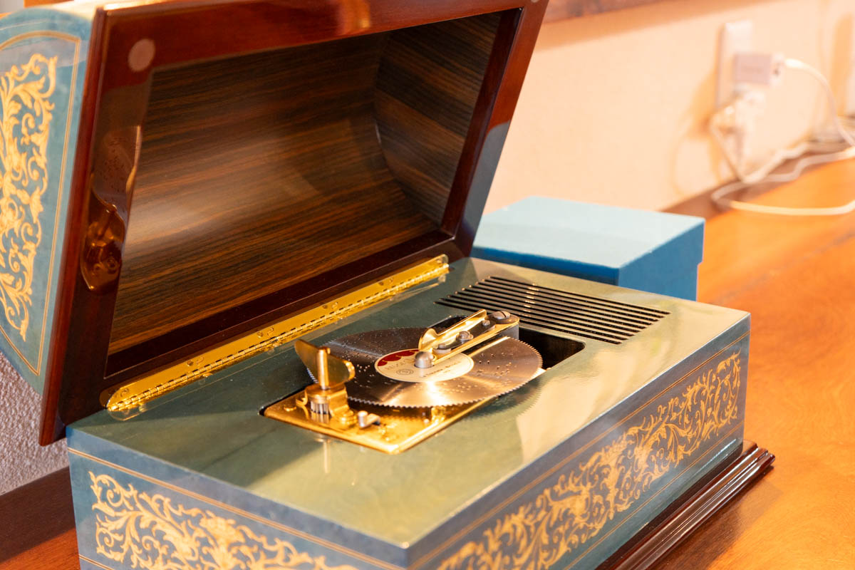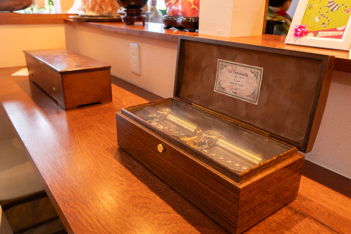 オルゴールによって音の奥行きが違ったり、レコードのように円盤を変えると曲が変わるオルゴールがあったり。素敵な音色を聞きながらのコーヒータイムって優雅すぎますね!