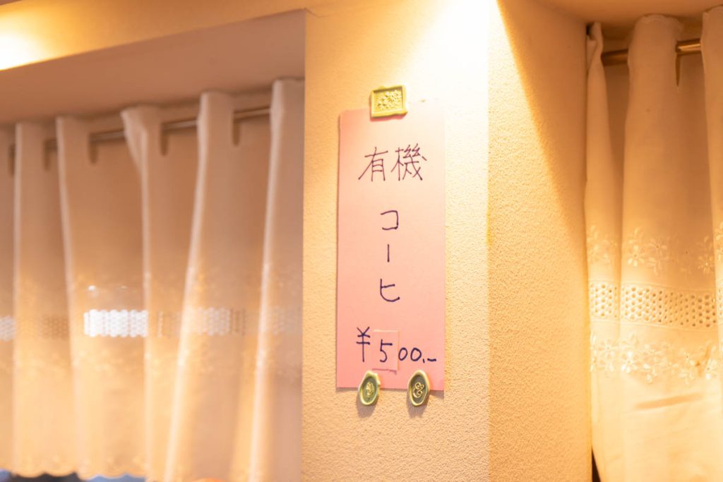 お店での飲食メニューはコーヒーのみ。店主さんのこだわりの有機栽培のコーヒー豆でいれたコーヒーなんだとか。