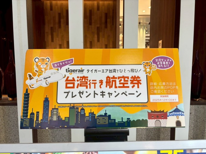 ちなみに台湾フェアの一環として、台湾行き航空券のプレゼントキャンペーンなんかも。台湾好きさんはフェアを楽しみつつ、応募してみるのもいいかもしれない。