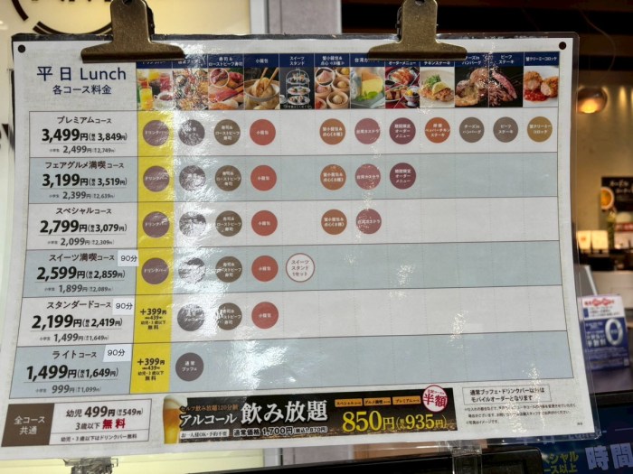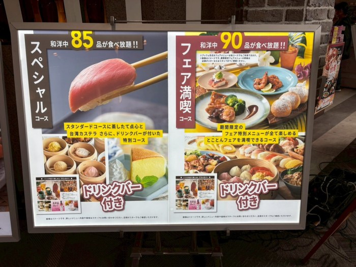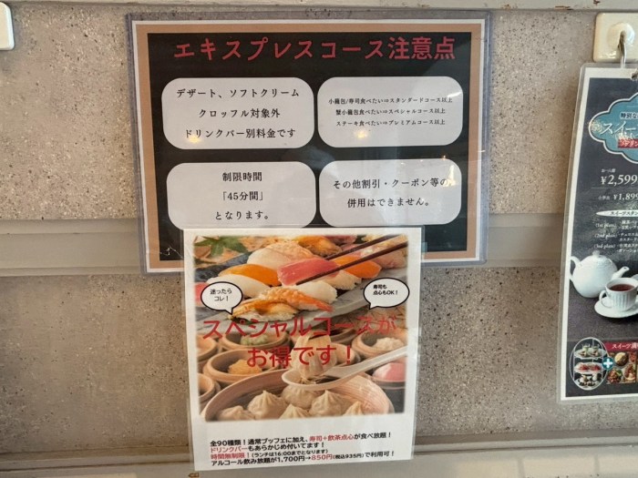 ちなみにエキスプレスコースに関して、注意点もある。まず、スイーツメニューやオーダー式はエキスプレスコースの対象外。ドリンクバーは追加料金。