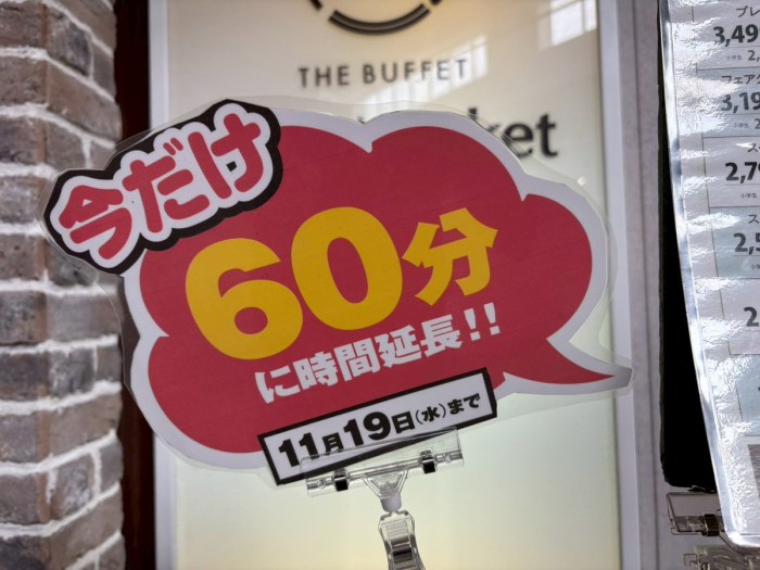 45分食べ放題で平日ランチをサクッと楽しめる「エキスプレスコース」だが、嬉しいことに11月19日まで無料で60分に延長されているらしい。
