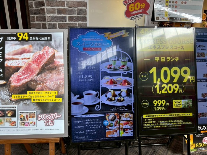 ランチをどうしようかなと考えていたら、「45分制食べ放題 エキスプレスコース 1099円」という文字が目に飛び込んできた。
