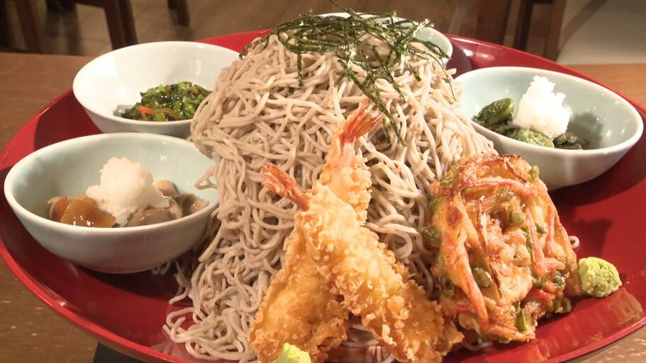 4. 鍋にたっぷりの湯を沸かし、そばを袋の表示時間どおりにゆでる。湯をきって流水で洗い、冷水につけてしめ、水けをきって器に盛る。【3】を椀(わん)に盛り、わさびを添える。