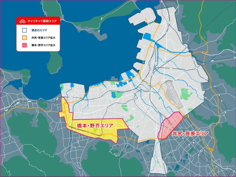このように、かつて「チャリチャリが使えたら便利なのにな~」と期待されたエリアにも、どんどん拡充されて便利になっていっています!
