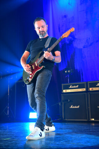 2曲目に披露されたのは2016年の再結成3rd作『FORWARD IN REVERSE』からの、元気よく飛び跳ねるかのごときタイトル・トラック。さらに「今晩はみんなと30周年を祝うのを楽しみにしていたよ。でもその前に他のアルバムから少し…」というMCの後、同作の人気曲「I Would If I Could But I Can’t」、2nd『ROTATOR』(1996年)からの「Thorn In My Pride」「Rotator」、最新作からの「The Middle」…と続き、観客のリアクションは曲が進むに比例して大きくなっていく。彼らのライヴでは常に驚かされることだが、ティムの歌声はアルバムと全く遜色ない艶やかさであり、全くつられることなく流麗に奏でられるギター・プレイは、1人の人間が同時にパフォームしているとは思えない素晴らしさだ。