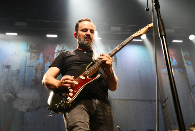 そんなマニアックな時間が過ぎると、必然的に人気曲が固められたセットリスト終盤へ突入。「次の曲はみんなで一緒に歌えるチャンスだよ」…そんな呼びかけから始まった「Love Is A Loser’s Game」は、ティムのソロ・ライヴでもお馴染みの、ギター1本のみによる弾き語り形式だ。と言ってもアコースティック・ギターが登場するわけではなく、現在の彼が愛用するストラトにはすべてL.R.バッグス製のピエゾ・ピックアップが組み込まれており、素晴らしいそのクリーン・サウンドがメロディの良さを生々しく浮き彫りにする。その余韻も醒めないうちに間髪を容れず、再び3人体制に戻って「67 Seas In Your Eyes」がスタート。この曲は中間に毎回長いインプロ・セクションが設けられることでお馴染みであり、今回は空間系エフェクトを思い切り効かせつつソロを弾きまくるという珍しい姿を観せるティム。総尺10分に渡って熱演を繰り広げた。