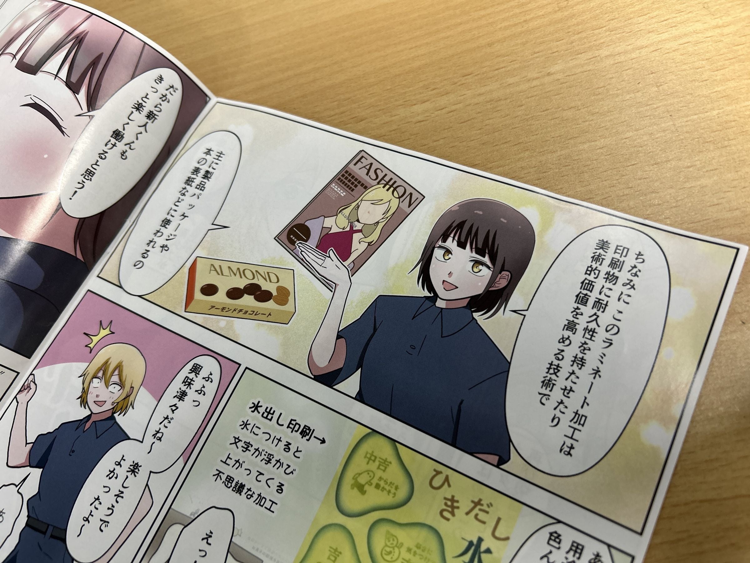 株式会社大和紙工業が配布している企業説明パンフレット。漫画にして読みやすくしています
