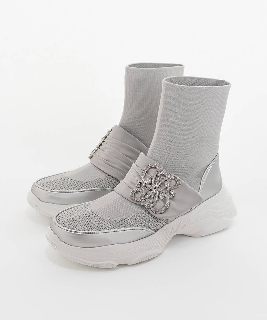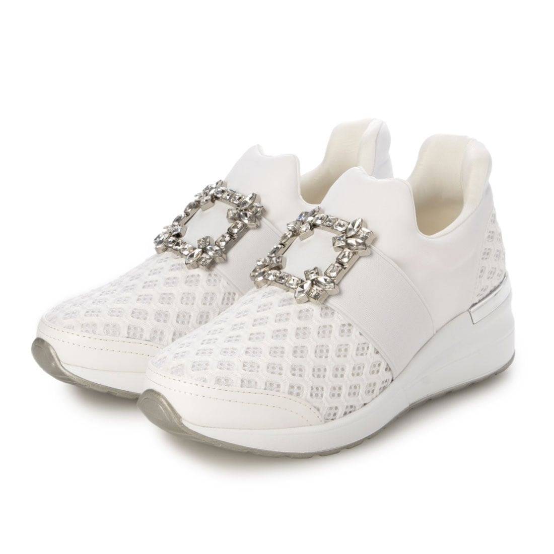 華やかなスクエアビジューがアクセントになっているこちらのスニーカーは、大人女子が履くのにぴったり♪