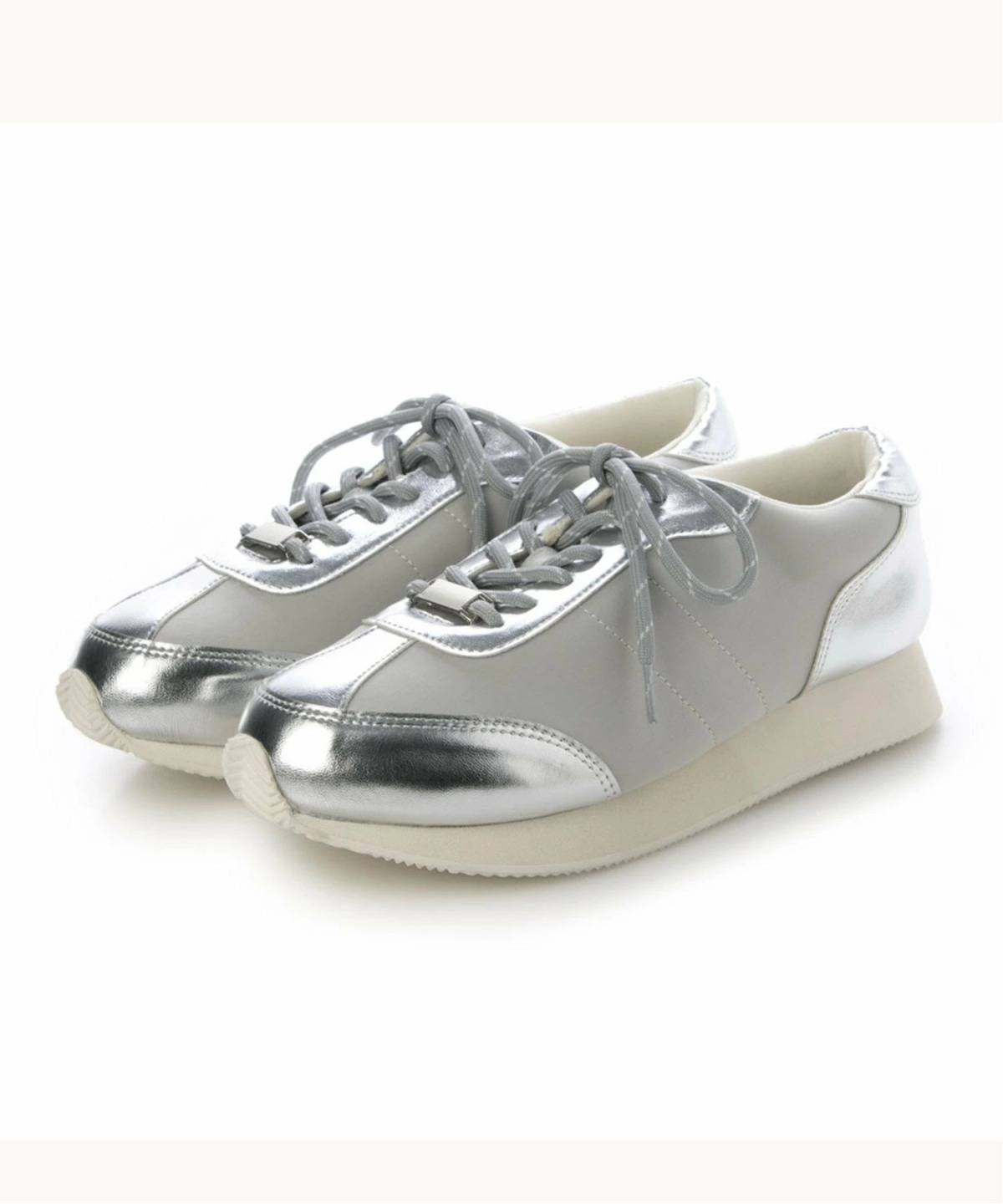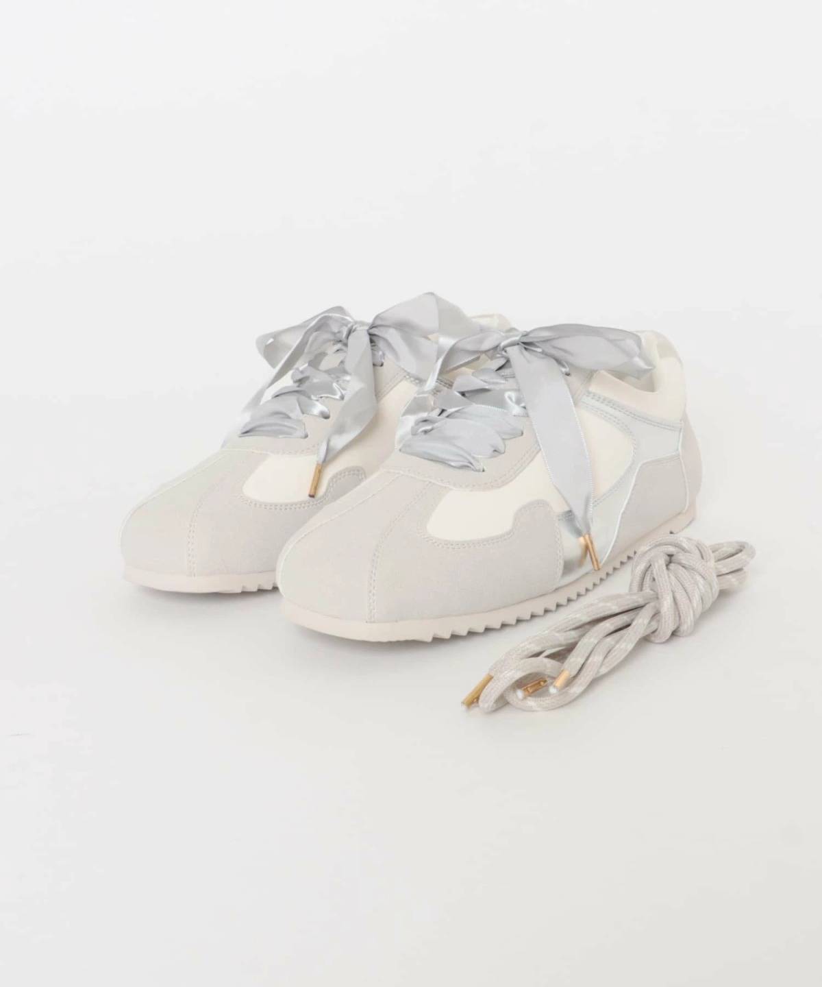 幅広のシューレースがポイントのフェミニンなテイストのスニーカー。