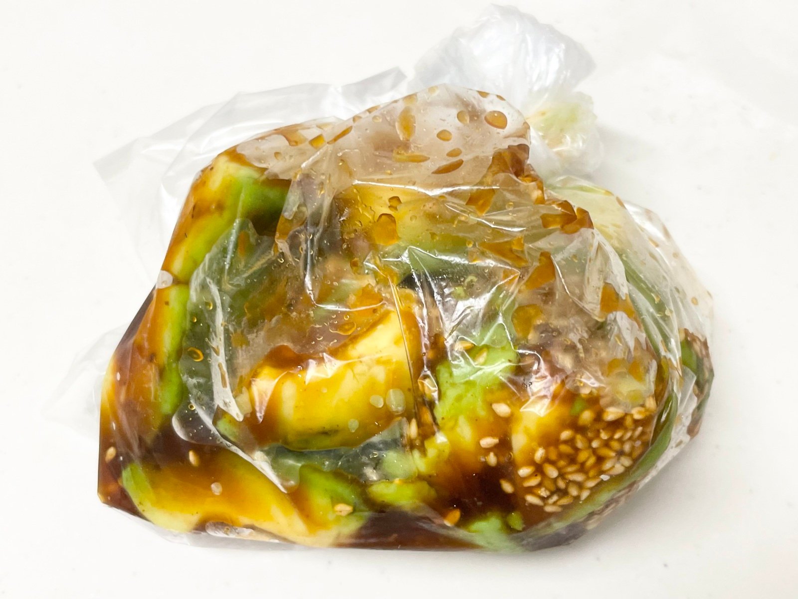 1.ポリ袋にすべての材料を入れます。30分以上漬けるのがおすすめです。