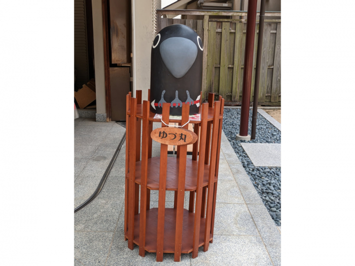 境内には、いたるところに八咫烏の「ゆづ丸」のキャラクターが。境内に設置された「ゆづ丸奉納台」に願い事を書いた短冊を納めると、ゆづ丸がその願いを神様へ届けてくれるという、なんともかわいらしい仕組みになっています。