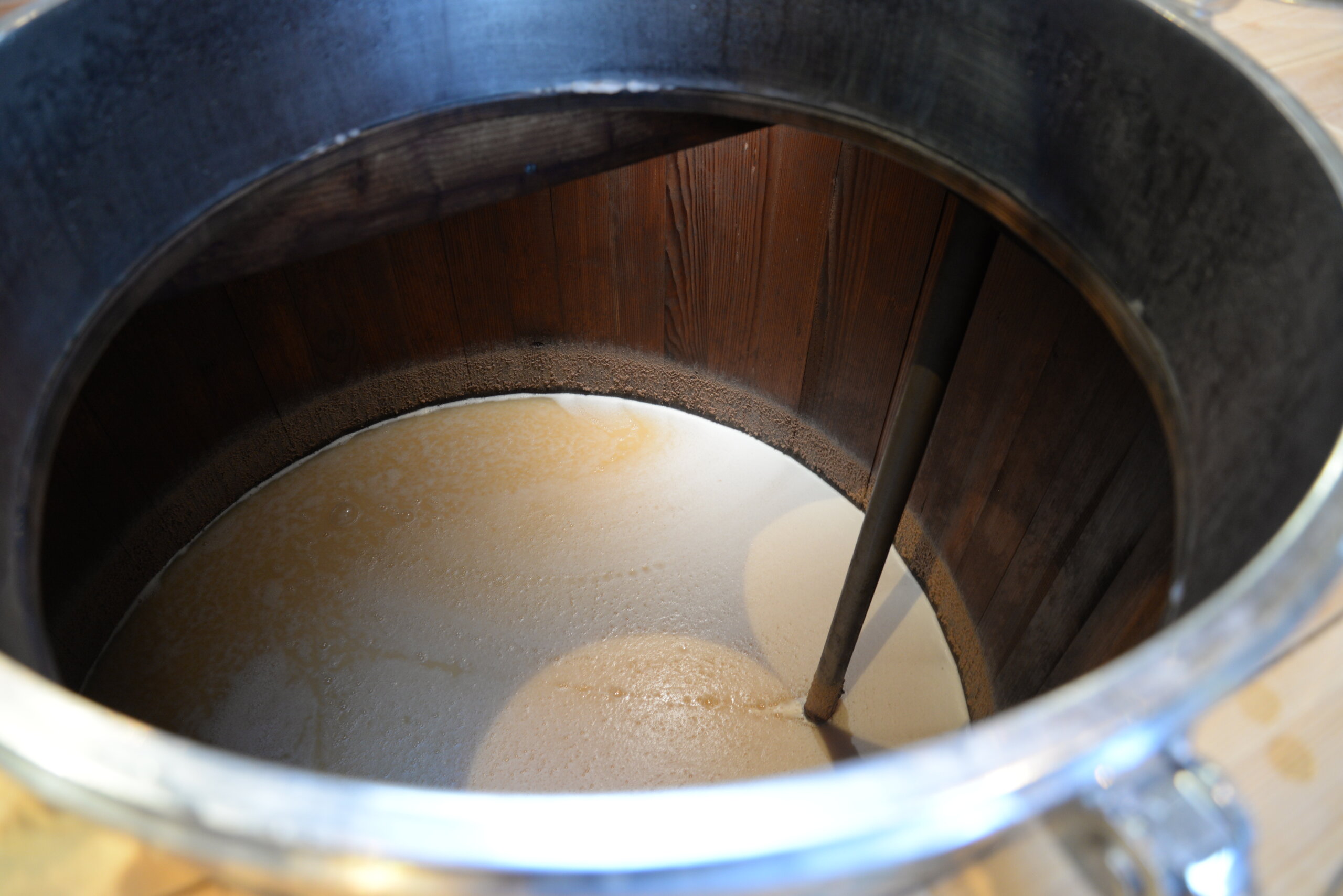 「モロミ」とは、発酵中の麦汁に酵母を加えて発酵させた、アルコール度数が約7~8%液体のことです。