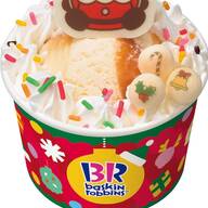 ビターなカラメルクリームに、ホワイトチョコチップとダイス苺、スポンジを合わせ、カスタード入りホイップクリームとシリアル入りチョコレートでサンタの顔に仕上げています。