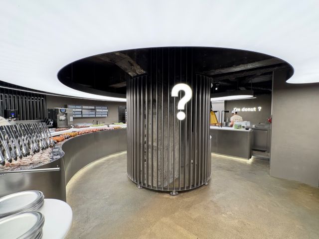 京都店の店内は、ステンレスを基調とした近未来的なデザイン。 無駄のないシンプルさと開放感のある空間が印象的で、どこを切り取っても“フォトジェニック”。ずらりと並ぶドーナツを自分で選ぶスタイルで、思わずどれも手に取りたくなるかわいさ。