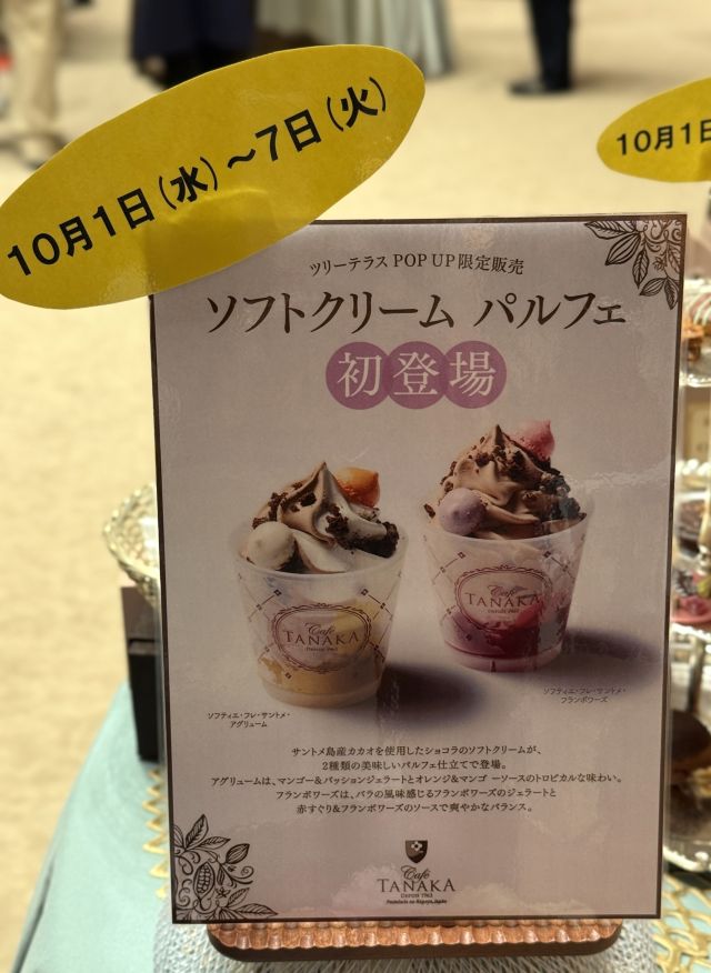 イートインでは、ショコラ・サントメのソフトクリームが、2種類のパルフェ仕立てで登場。カカオの未来を考えるワークショップも行われるそうですよ!