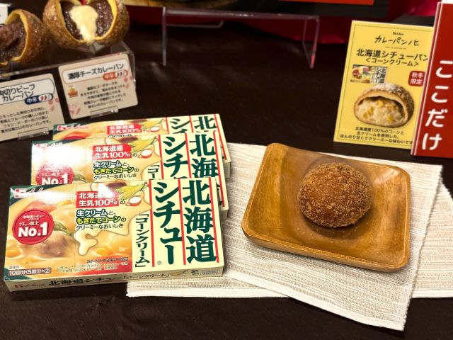 「カレーパンノヒ」からは、同じく10月15日(水)より「北海道シチューパン<コーンクリーム>」が発売。北海道産コーンと生クリームのやさしい甘さが広がるクリーミーな味わいで、軽めのランチやおでかけのお供にもぴったり。ハウス食品のシチューをイメージした、ちょっと遊び心のある限定パンです。