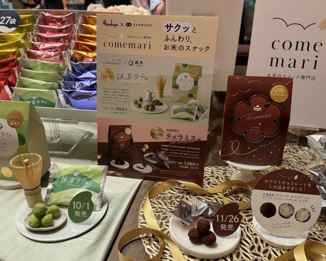 さらに、お米のスナック「comemari」からは遊び心あふれる新フレーバーが続々と。10月1日(水)に「抹茶ラテ味」、11月26日(水)には「ティラミス味」が登場。軽やかな食感ながら、秋冬らしい深みのある味わいが楽しめます。