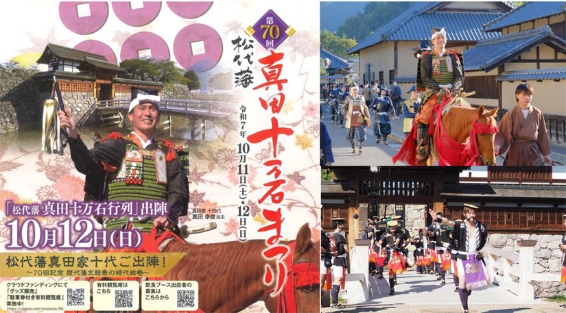 10/11(土)10/12(日)『第70回松代藩真田十万石まつり』史上初!真田家十代が集結!俳優・田中健さん、鬼越トマホーク来場!200名以上の武者行列は圧巻@長野県長野市