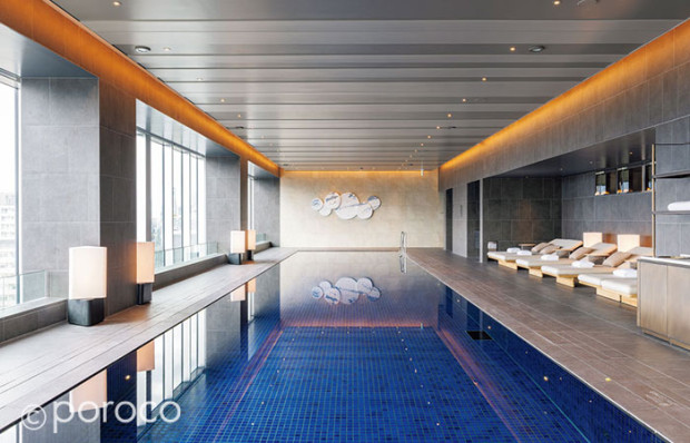 宿泊ゲストと有料会員が利用できる、札幌では珍しい、高層階にある屋内温水プール。