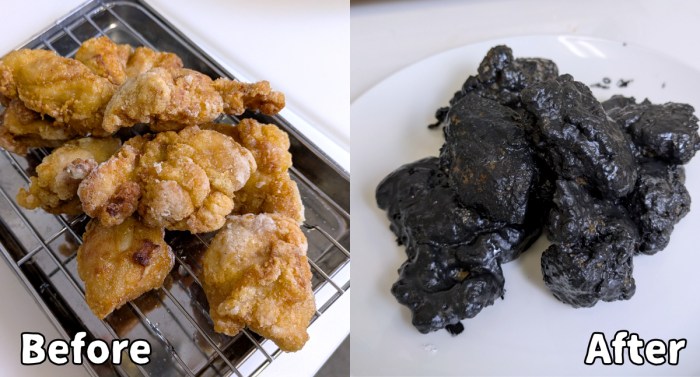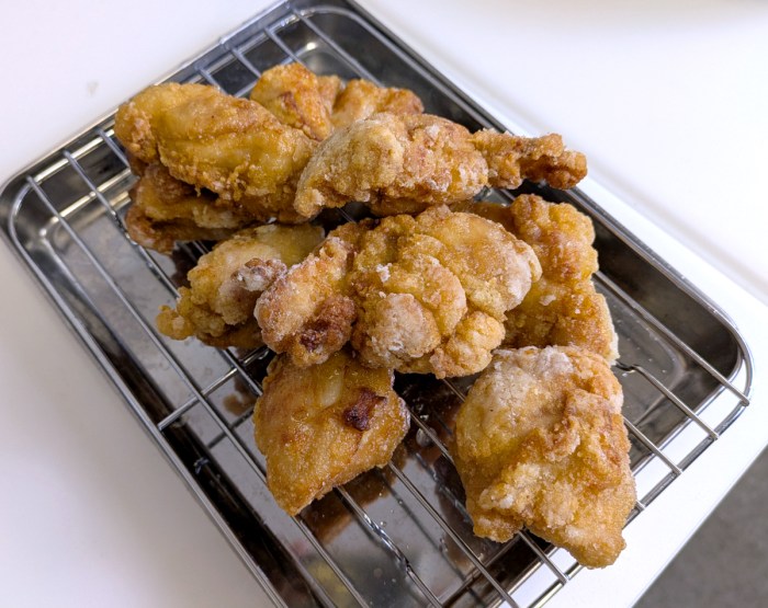 ビフォー・アフターを見比べてみると、その差は歴然。同じ食べ物とは思えないのだが、間違いなく同じから揚げである。