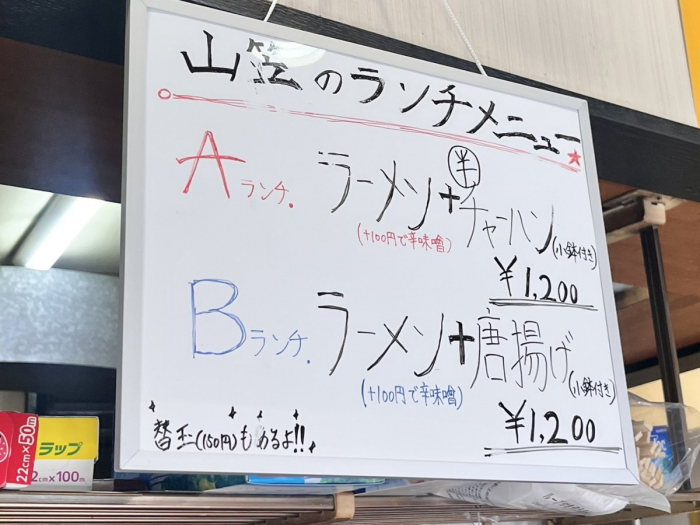 今回紹介した一品メニューは夜営業時に注文可能。お昼はお得なラーメンセットを提供されています。