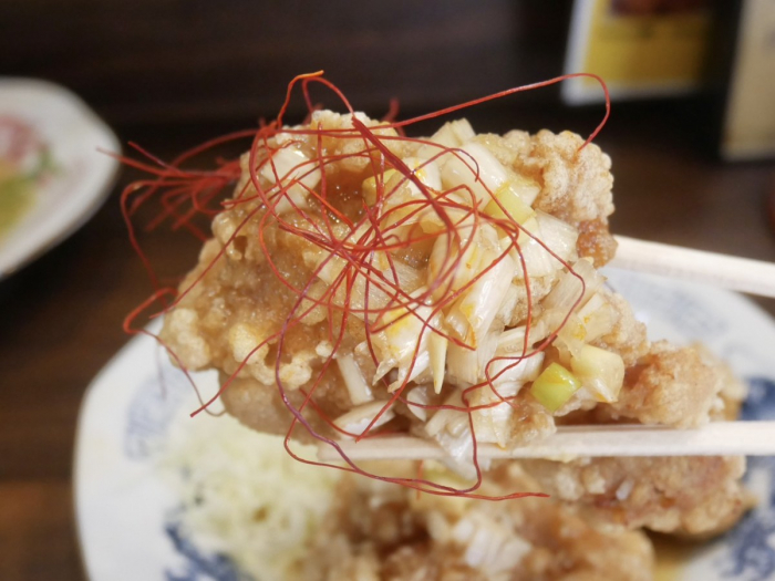 カリッと揚がった衣、噛むたびに溢れる肉汁。甘酸っぱいタレがしっかり染み込んでいて、白いご飯を注文したくなりました。