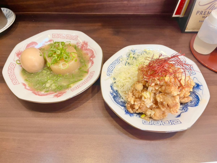 今回はお店の名物候補!?である、山笠ならではの「豚骨おでん」と人気メニューの「油淋鶏」をいただきました。