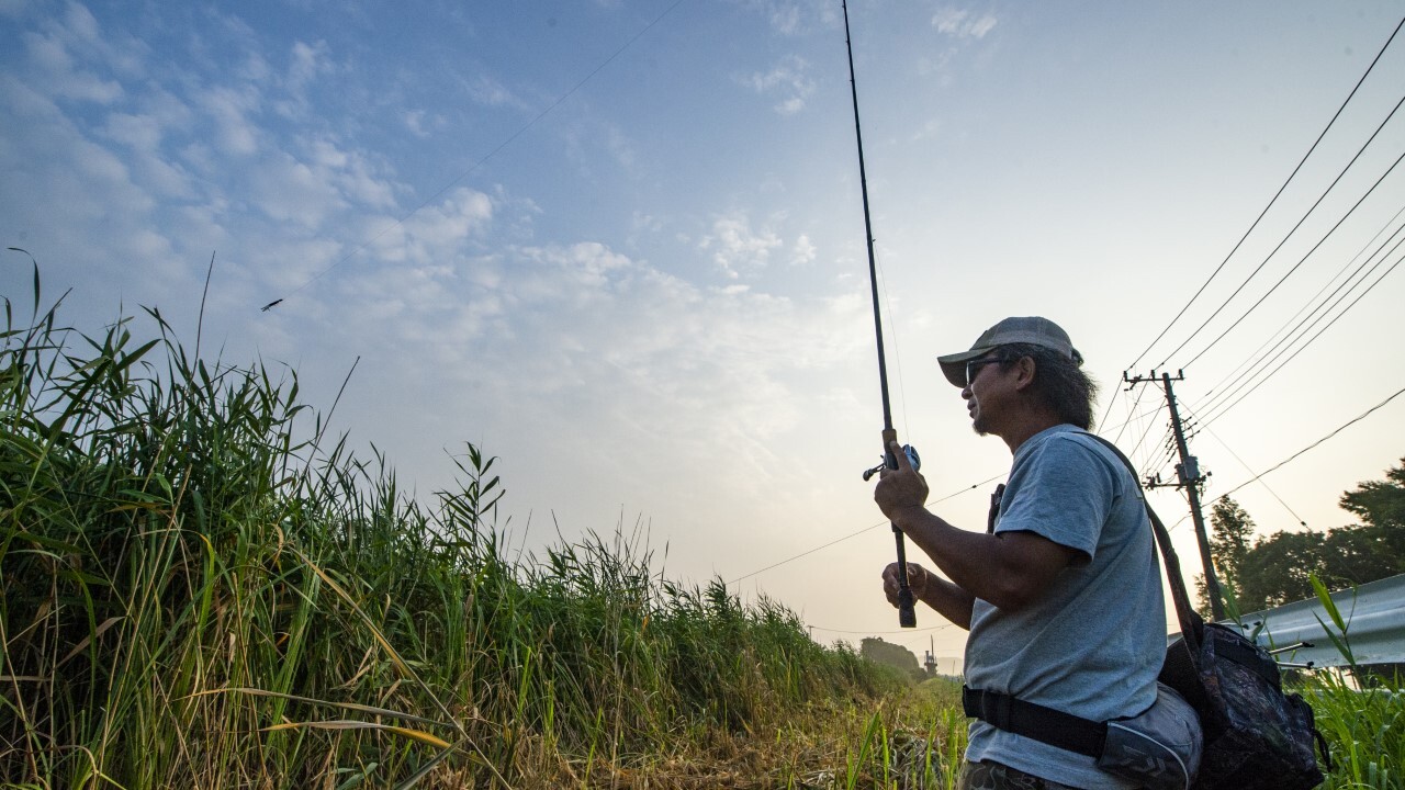 目の前には馬路のタックルセレクトに納得せざるを得ない光景が広がっていた。水路と馬路の間には、人の背丈より高いアシ(とたまにガマ)の分厚い壁。生半可なカバー撃ちタックルではリズムが作れないどころか、場所によっては水中にルアーを落とすこともままならないだろう。