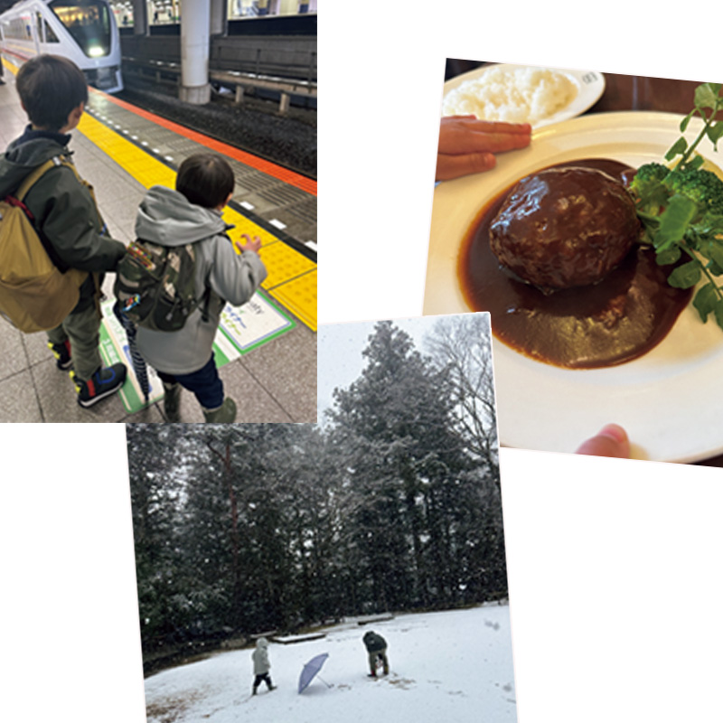 「北千住駅から東武鉄道の特急で。はじめて見るスペーシア Xに特に6歳次男が大興奮。日光駅に到着したらそのまま『日光東照宮』へ。雪が降るなかの参拝は大変だけど趣きがあってよかったです。ランチは建物が有形文化財にもなっている『明治の館』で洋食をいただき、ホテルにチェックインしました。お猿さん型のチョコクリーム最中がキッズ用ウェルカムスイーツとして用意されていたり、スタンプラリーができたり、スタンプラリー完了後はアイスがもらえたりと子どもには天国。大人はお部屋時間や温泉、そしてちょっと贅沢な朝食を楽しみました。子どもはシリアルなどビュッフェ台にあるものは無料でありがたかったです。帰りは『華厳滝』などに寄って帰宅しました」
