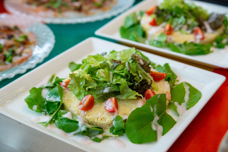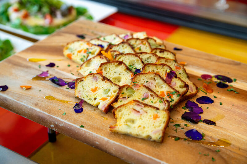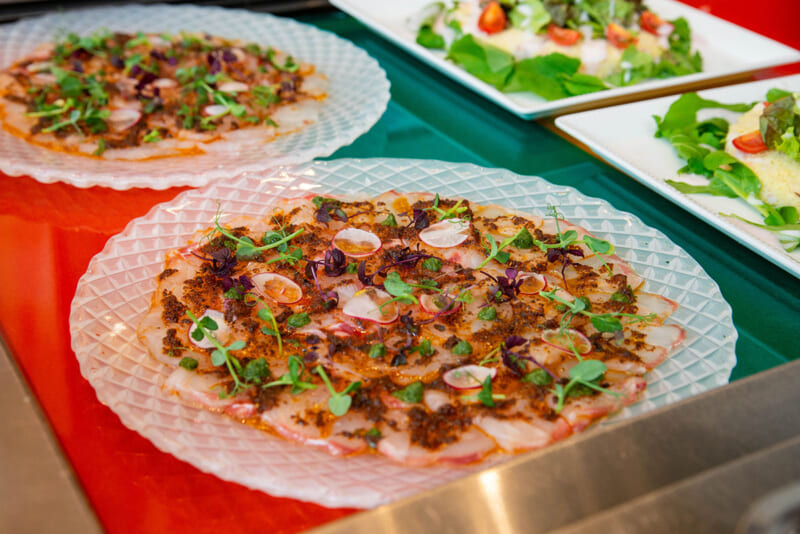前菜コーナーでひときわ目を惹かれたのは「ロースハムとモッツァレラのケークサレ」。ふんわりと香るハムの旨みと、モッツァレラのまろやかさが絶妙!ほどよい塩味がクセになるおいしさです。魚介のカルパッチョやローストミートなど、他のお料理と合わせていただいても◎。