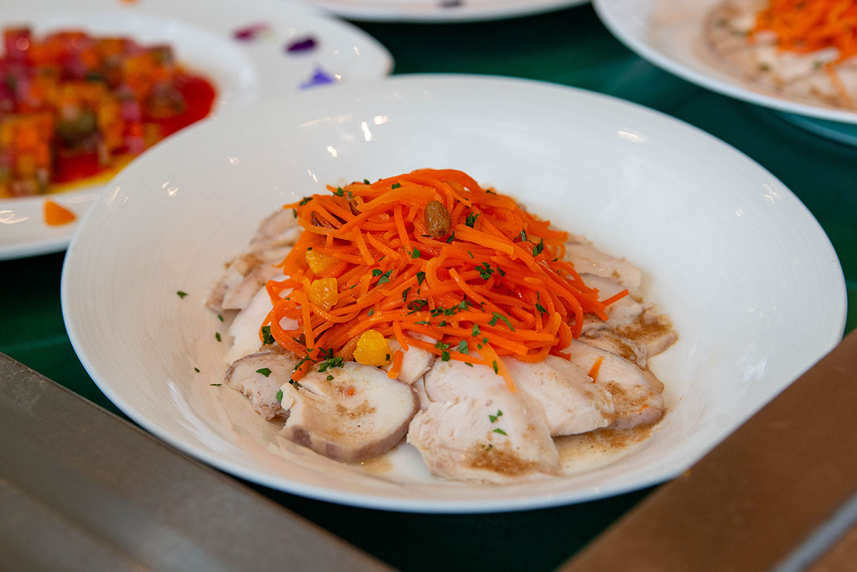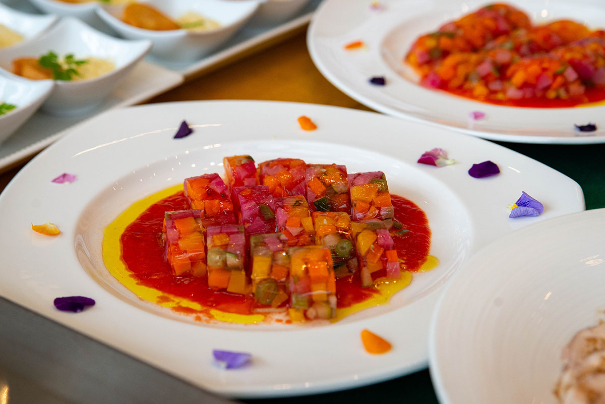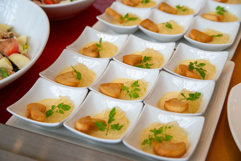 このほかにも、クリスマスらしい赤が映える「ラタトゥイユのアスピック」、しっとりとした舌触りが贅沢な「鶏むね肉とささ身のキャトルエピスマリネとキャロットラペ」など、どれも“次はこれも食べたい…!”と心を掴まれる、華やかな前菜が勢ぞろいしていました。