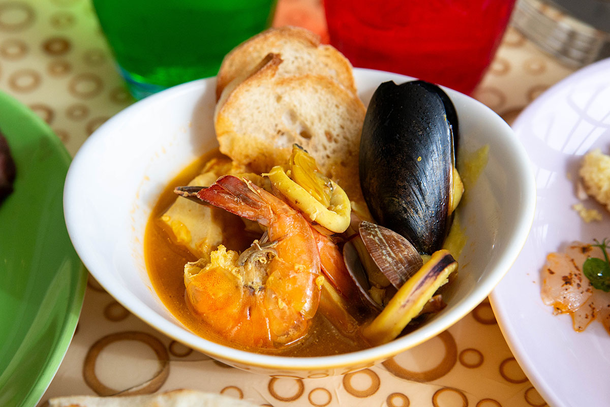 まず「ブイヤベース」。海老、ムール貝、イカなどの魚介がごろごろと贅沢に入っていて、スープをひと口いただくと…ぎゅっと凝縮された魚介の旨味が口いっぱいに広がり、思わずため息が出る美味しさ――。添えられたバケットを浸せば、スープの旨味を余すことなく堪能できて、気づけばお皿が空に。