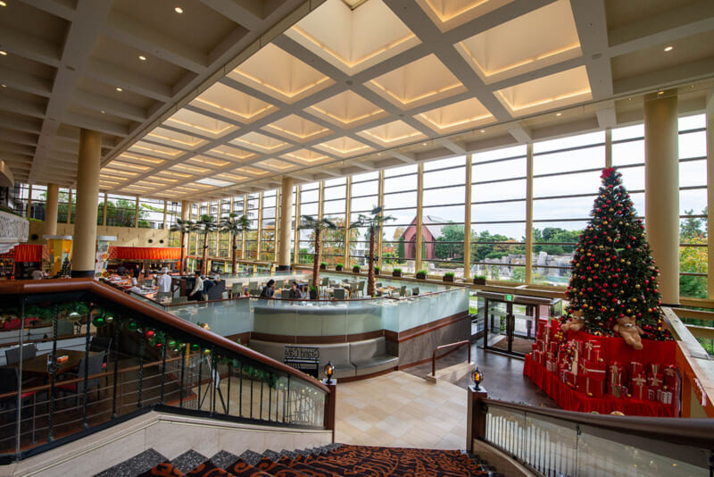 グランカフェのクリスマスメニューにお腹を満たされた後は、ホテル館内の装飾も楽しんで。グランカフェ隣の吹き抜けいっぱいにそびえ立つ、大きなクリスマスツリーは圧巻!