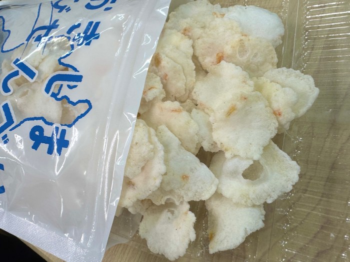 「個人的には特別おいしいと思っているわけではない。ただ、沖島へ行ったら必ず買うもの」と友人談。なるほど、確かに泣くほどウマいとかではない。しかしエビの風味がきいたサクサクスナックは、永遠に食べ続けられる安定的なおいしさ。なんだかんだこういうのが一番いい。