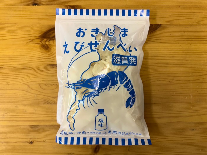 「沖島」とは琵琶湖唯一の有人島。恥ずかしながら、私は琵琶湖に島があることを知らなかった。沖島は観光客に人気なほか、滋賀の人もフラッと行ったりするところなのだそう。そして沖島にフラッと行った人が必ず買って帰るのが、この『おきしま えびせんべい』らしい。