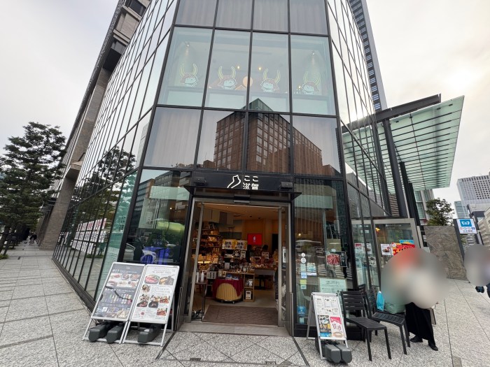 東京駅から徒歩圏内の超好立地にある『ここ滋賀』は、オシャレなガラス張りの外観を有する路面店。