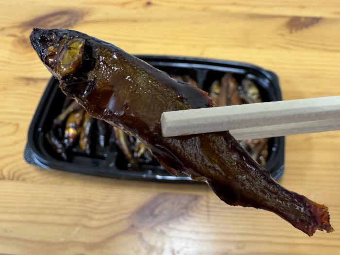 これほど甘く煮込んでも、3種類それぞれ完全に別の魚だということが分かる。おみやげに貰ったら嬉しい!