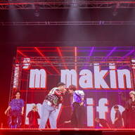 なお、始球式や呼び込みの際には、佐賀バルーナーズの選手たちも盛り上がっている様子を見せていたが、バルーナーズについて聞かれると「バスケがこんなにかっこよくて、楽しいんだという事をはじめて知りました」(田野)、「目が離せなかったです!(田野と)一緒にずっと盛り上がって試合を見ていました!一度観たらファンになってしまうスポーツですね!」(衣川)と、2人とも興奮した様子でバスケの魅力をコメント。その後、会場スクリーンで劇場版予告映像が流れ、会場からは大きな拍手が。迫力ある映像を振り返り、衣川は「佐賀県の皆さんの活躍も劇中では見られるので、ぜひ劇場に遊びに来てください!」と映画のアピールをした。
