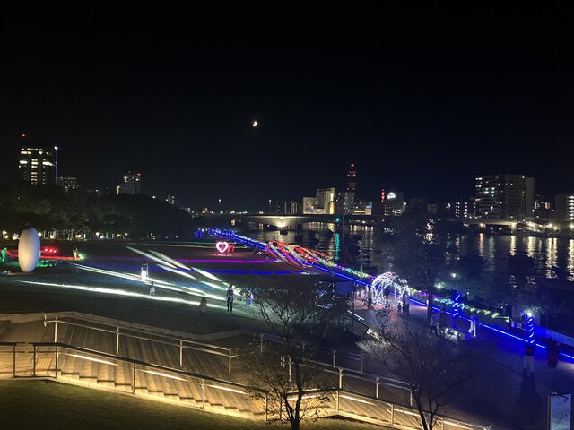 テーマカラーであるブルーを基調とした屋外イルミネーションが、信濃川沿いを美しく照らします♪