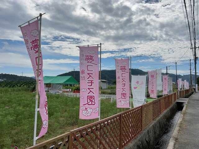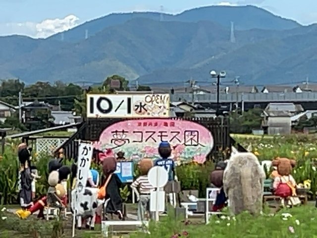 京都府亀岡市。この日たまたま車で近くを通りかかると、何やら幟が立っているのを発見。で、調べてみると、毎年この時期に開園される『夢コスモス園』であることがわかり、行ってみることに。