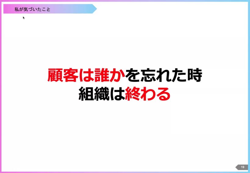「顧客は誰かを忘れた時、事業は終わる。顧客は誰かを思い出した時、事業は復活する。」