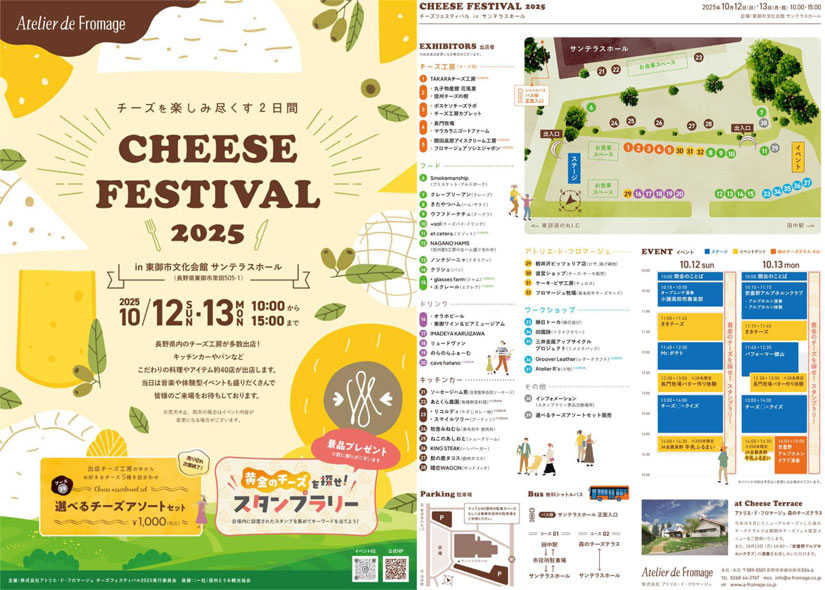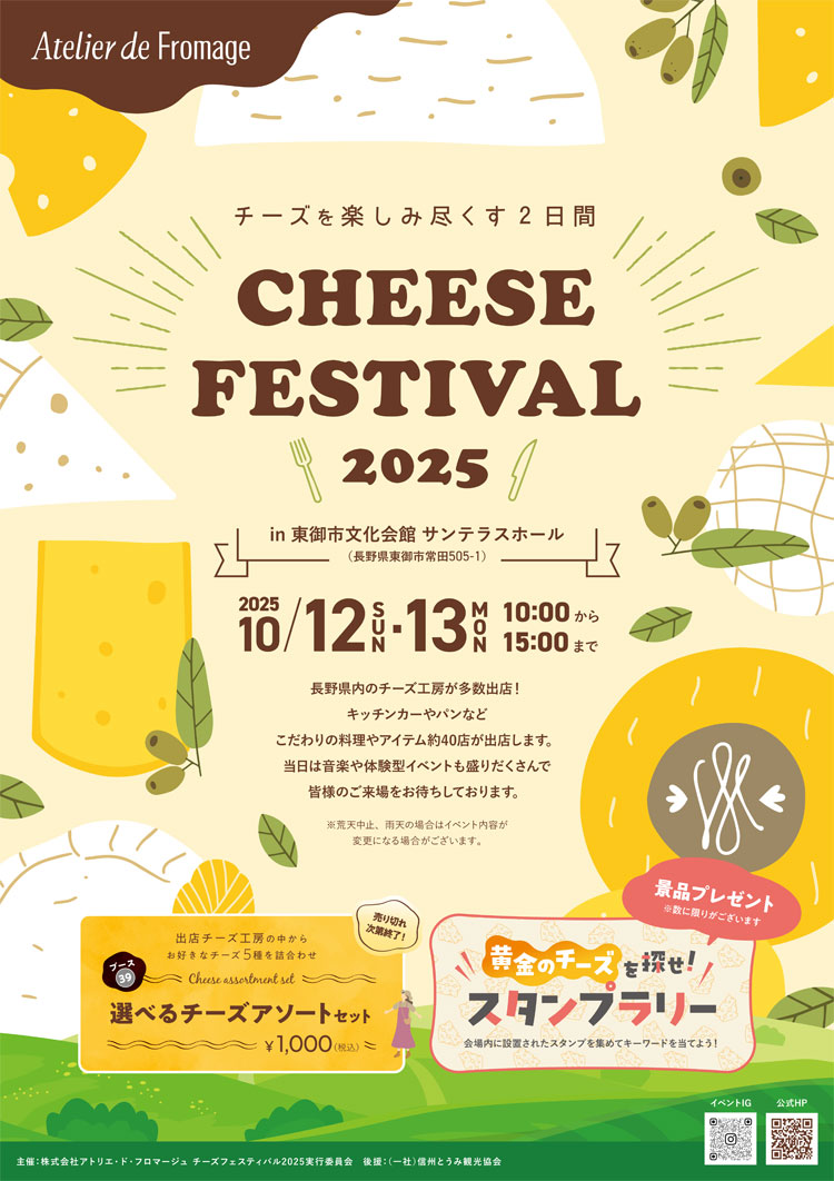 長野県東御市で、長野県屈指のチーズ工房「アトリエ・ド・フロマージュ」が主催する秋のチーズイベント『CHEESE FESTIVAL2025(チーズフェスティバル2025)』が、2025年10月12日(日)・13日(月・祝)に開催。