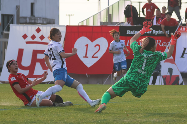 4大会ぶりに浦和と対戦したくノ一は、0-0で迎えた後半28分に途中出場のFW平田ひなののゴールで先制した。2分後にコーナーキックから同点とされたが、36分に再び平田がゴールネットを揺らし、準々決勝に勝ち進んだ。