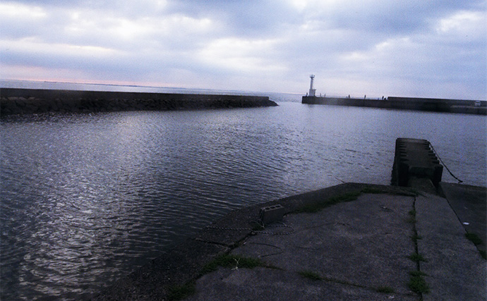 曇り空で薄暗い。白灯堤は多くの釣り人でにぎわっているが、港内にはいない。干潮と満潮の真ん中あたりで、まだ水位は低い。これから上がってくるとハゼ釣りにはベストタイミングだ。