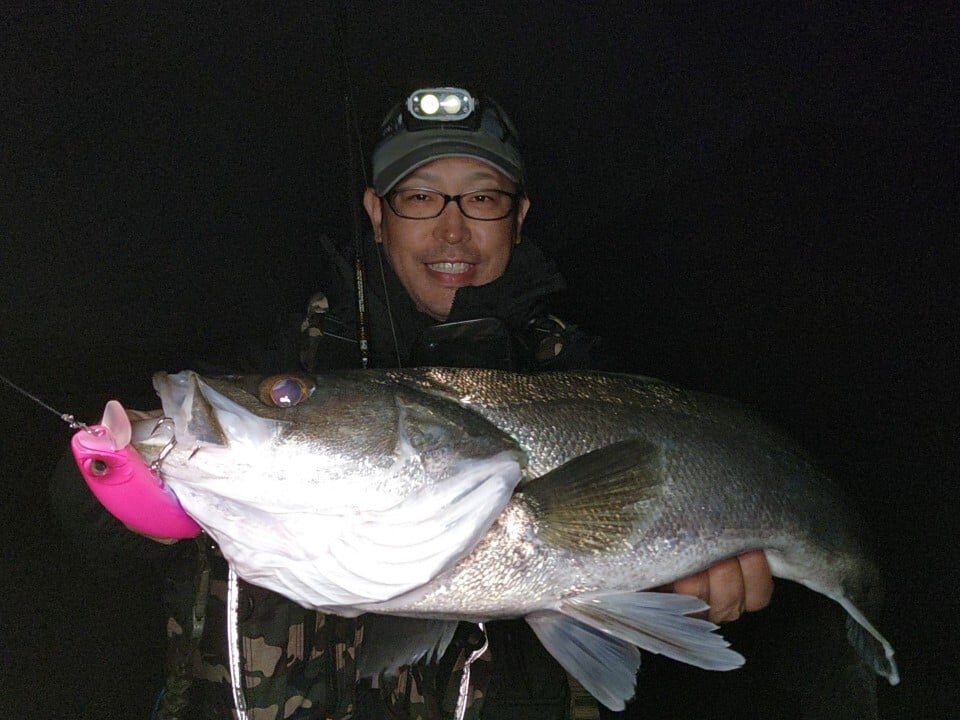 そこへエノハ(ヒイラギ・5〜8cm)が加わりデイでエノハパターン、ナイトでサヨリパターンが成立する。シーバスの釣れるサイズはデイ、ナイトともに幅があり50cmからマックス90cmクラスまで。サイズを問わなければ50尾近い大釣りができるものの、ランカーがまじる割合は1割ほど。