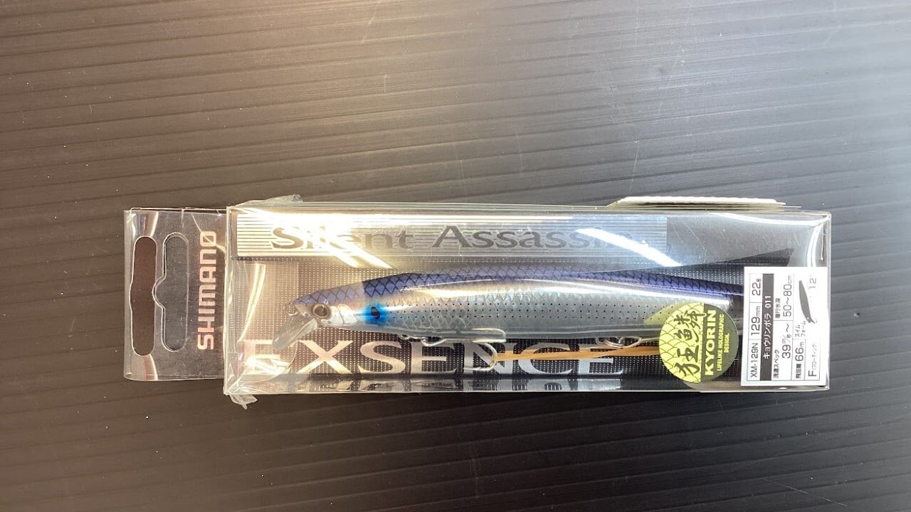 ラインスラックを使ったジャーキングで使用。シルバー系、ゴールド系の両方を使い分けたい。エクスセンスサイレントアサシン129F ジェットブースト(シマノ)