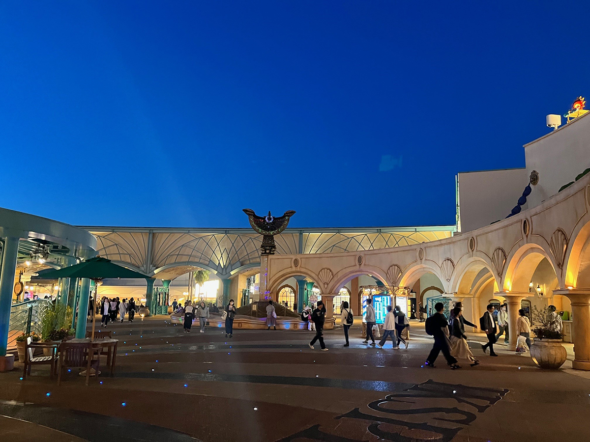 私のオススメはイクスピアリの玄関口「エントリー・プラザ」です!エントリー・プラザには、月や金星、火星など曜日に合わせた惑星のモニュメントが7 つあります。この7つの惑星のモニュメントは、ある時間になると曜日に合わせたそれぞれのモニュメントの鐘の音を聞くことができます!また、昼は明るく開放的でエントリー・プラザにある噴水や日時計がきれいな雰囲気ですが、夜になると地面が青や緑の光が照らし、落ち着いた雰囲気も楽しめて夜にゆっくりと外で過ごしたい方におすすめです!