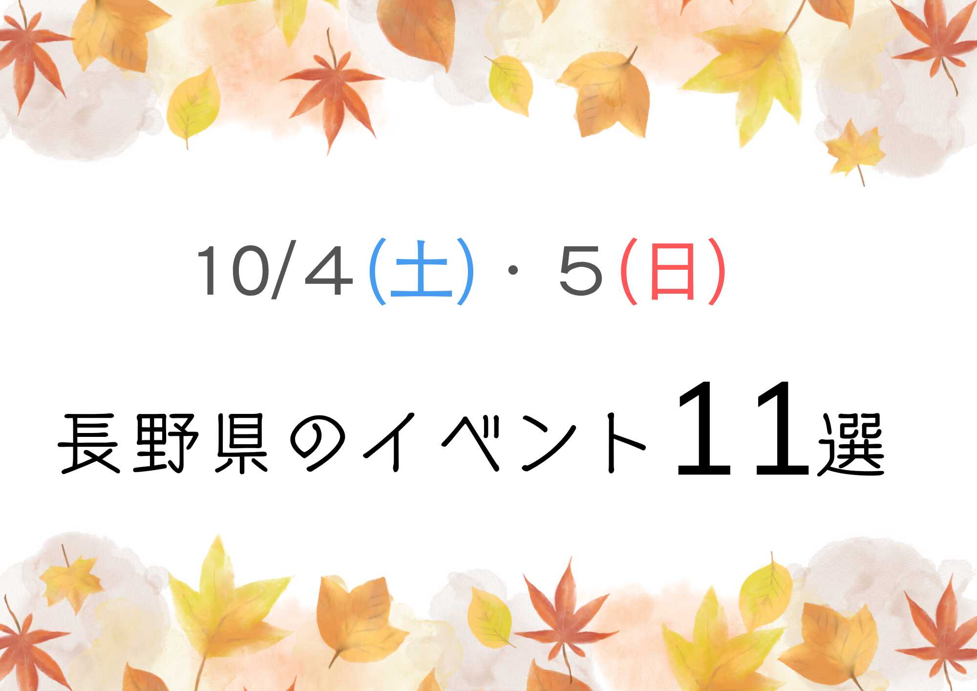 10月がスタート。食欲の秋、芸術の秋、スポーツの秋・・・秋のイベントを楽しみましょう!この週末も盛りだくさんです。 2025年年10月4日(土)、5日(日)に長野県で開催されるおすすめのイベントをご紹介します♪